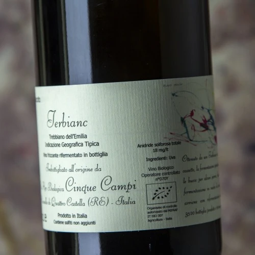 Skin contact for 4 days. Fermented with indigenous yeasts in concrete tanks. The must is added to the wine in order to obtain foam and it is aged for 6 months in the bottle before disgorging.