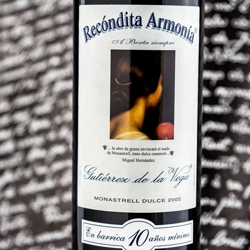 The 2005 Casta Diva Recondita Armonia is 90% Monastrell, 5% Syrah, and 5% Cabernet Sauvignon partially fermented prior to fortification maintaining a moderate level of residual sugar. Opaque purple and glass-coating, it has an intense perfume of blueberry jam. On the palate it is rich and concentrated but a bit one-dimensional.