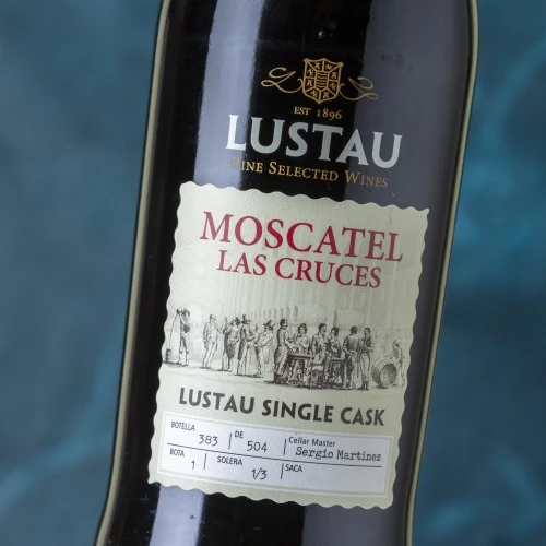 The NV Single Cask Moscatel las Cruces is a single-cask bottling of Moscatel selected from one of the three existing casks in the solera, which were separated some 25 years ago to create a very old Moscatel. It has a mahogany color and the floral and citrus aromas of the variety intermixed with hints of aromatic herbs, orange peel and burnt sugar, with a less complex palate and noticeable sweetness (273 grams of residual sugar). Only 504 half-liter bottles were filled in March 2017.